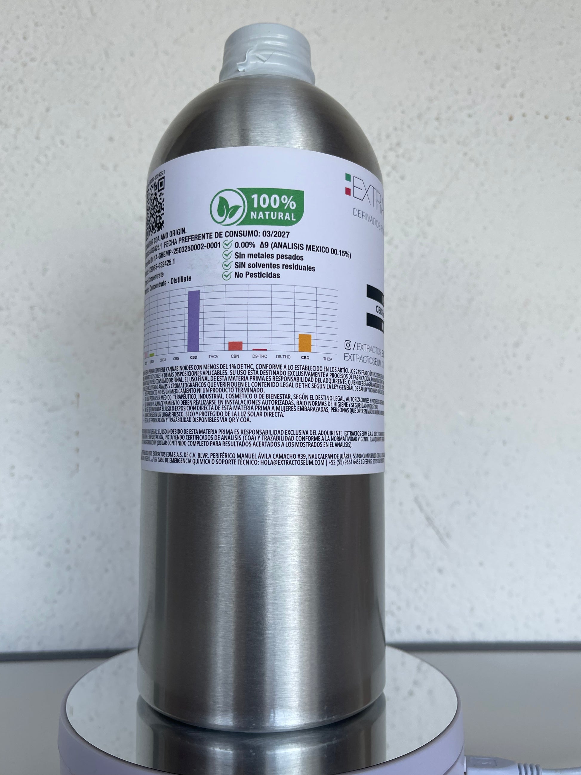 1. Pureza Inigualable Gracias a los proceso de destilación, nos deshacemos de todo lo innecesario (sí, adiós clorofila, lípidos, ceras y otros componentes rebeldes). El resultado: un aceite rico en fitocannabinoides, con un nivel de pureza superior y una vida útil extendida. 2. Versatilidad al Máximo Nuestro aceite totalmente destilado, listo para el invierno y descarboxilado, es la estrella en tinturas, cápsulas de gel, gomitas, cuidado de la piel y un sinfín de aplicaciones que requieran un espectro completo súper concentrado. ¡El límite es tu creatividad! 3. Terpenos como la Naturaleza Manda Las esencias aromáticas se recuperan durante el proceso y se reintroducen con sumo cuidado para reflejar con más fidelidad su sabor y perfil original. Además, ¡los perfiles de terpenos pueden personalizarse a tu medida! 4. Cuidados de Formulación Ten presente que por encima de 60% de concentración de CBD, es normal que cristalice. Para trabajar este aceite maravilla, caliéntalo entre 70 y 75 °C, licúalo muy bien, y voilà: listo para tus productos estrella. 5. Análisis de Laboratorio: Exactitud Garantizada Para obtener resultados confiables, el laboratorio debe calentar y licuar completamente el destilado antes de tomar la muestra. Un aceite semisólido o cristalizado podría dar datos equivocados… ¡y no queremos eso!